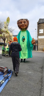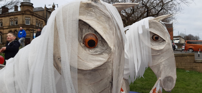 I also had a lovely time working with Handmade Productions on a lantern parade in Colne. I worked with two groups - one to create costumes to wear as they joined the Handmade Samba band in the parade, and the other group were from a dance school so I worked on choreography with them as well as created costumes. They were all 'Spring Hares' and had wonderful light up ears which looked great! I'm always blown away by the effort and energy of young people and how they put themselves forward to do something that might feel absolutely terrifying and way out of their comfort zone!